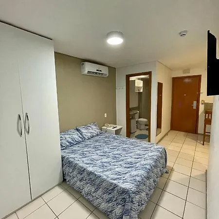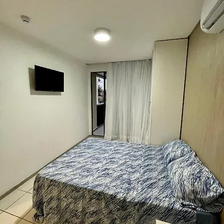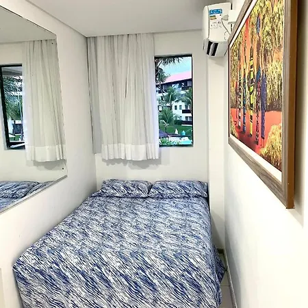 Con un cuarto de estar y un balcón, el Flat Marulhos Resort dispone de climatizador, y tiene vistas a la piscina. La propiedad incluye 1 dormitorio. Este apartamento está equipado con un cuarto de baño con toallas de baño. Además, hay un inodoro separado y una ducha.